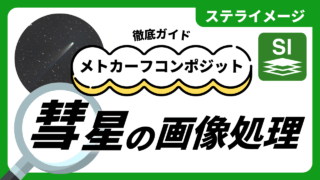 ステライメージ8(2017年発売)では、焦点距離とカメラ名を選択するだけで、画像の回転角や位置ずれを自動的に計算し、彗星の移動に合わせてコンポジットできるようになりました。