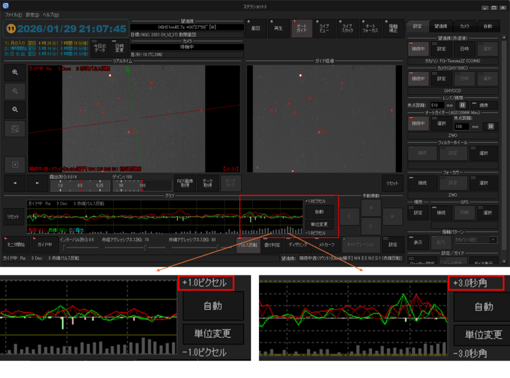 ステラショット3のアップデータにより、撮影・オートガイド周りの使い勝手が向上しました。